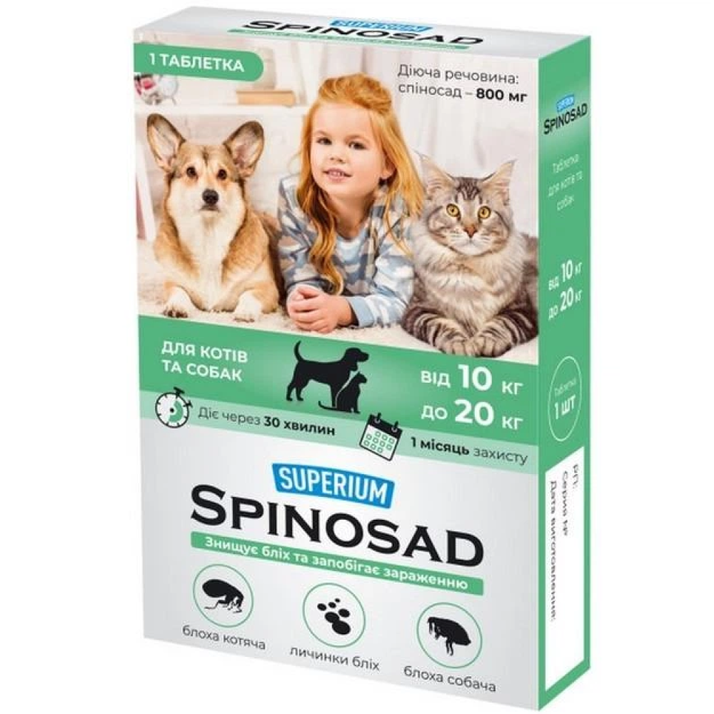 Superium Spinosad - препарат для котів та собак вагою від 10 до 20 кг та віком з 4 місяців. Особливістю препарату є те, що його можна давати молодим тваринам із низькою вагою.