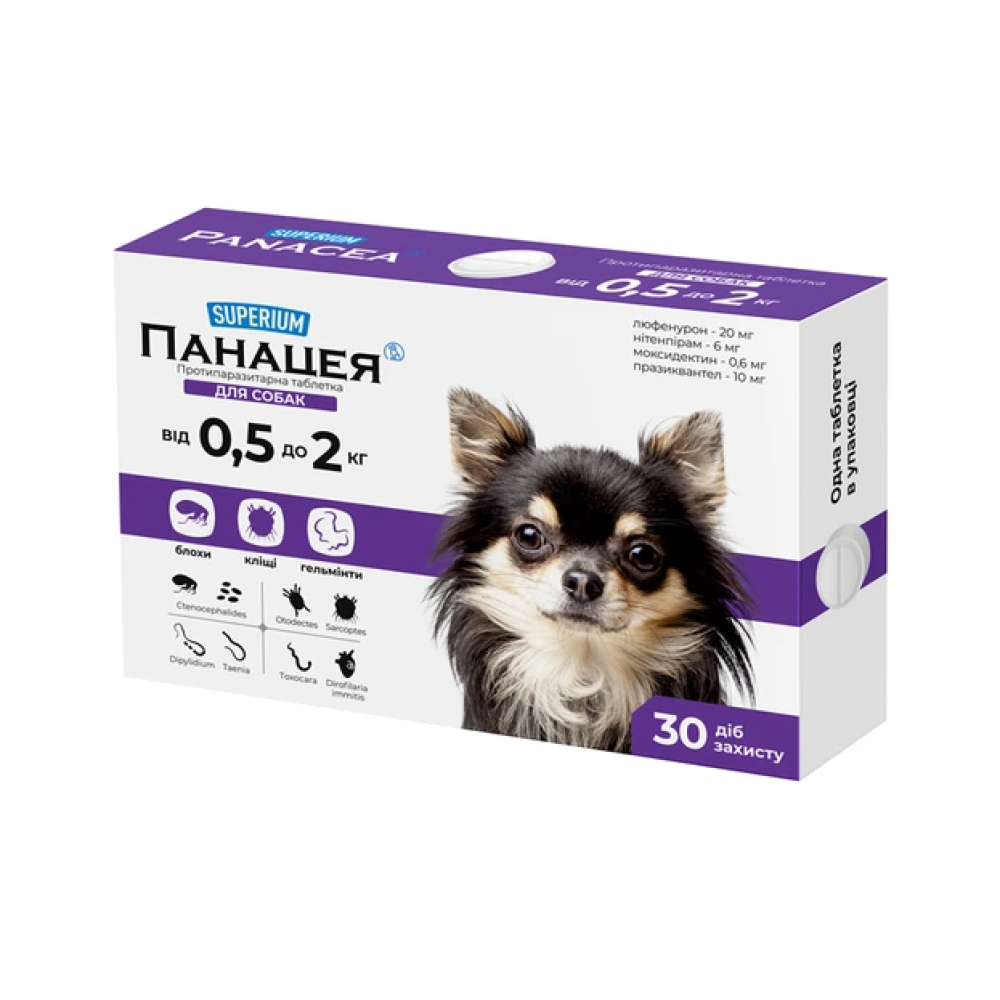СУПЕРІУМ Панацея протипаразитарна таблетка для собак вагою від 0,5 до 2 кг.