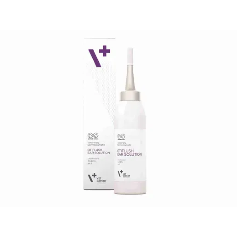 Vet Expert OtiFlush Ear Solution (Вет Експерт ОтиФлаш) – застосовується для гігієнічної очистки вушного проходу, а також як засіб для терапії при захворюваннях вух.