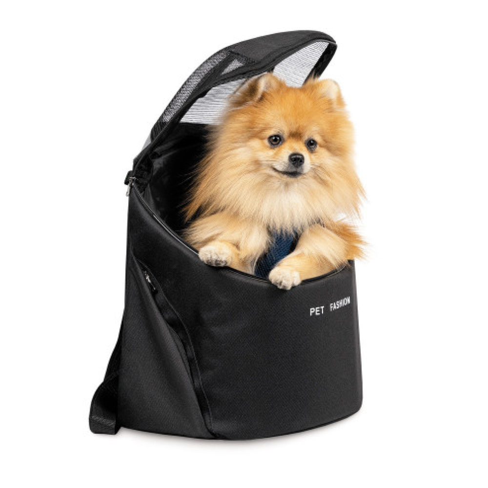 Рюкзак добре тримає форму завдяки ізолону і твердому дну, яке виймається. Цупка сумочна тканина легко чиститься і має привабливий вигляд, а віконечко з сітки дозволяю улюбленцю тримати ситуацію під контролем, дихати свіжим повітрям. Попіклувалися ми і про комфорт господаря: лямки м’які та широкі, їх можна регулювати, кишенька для дрібниць дуже зручна та містка. Також є пояс із застібкою для кращої фіксації рюкзака на спині і ручка-петля для руки.
