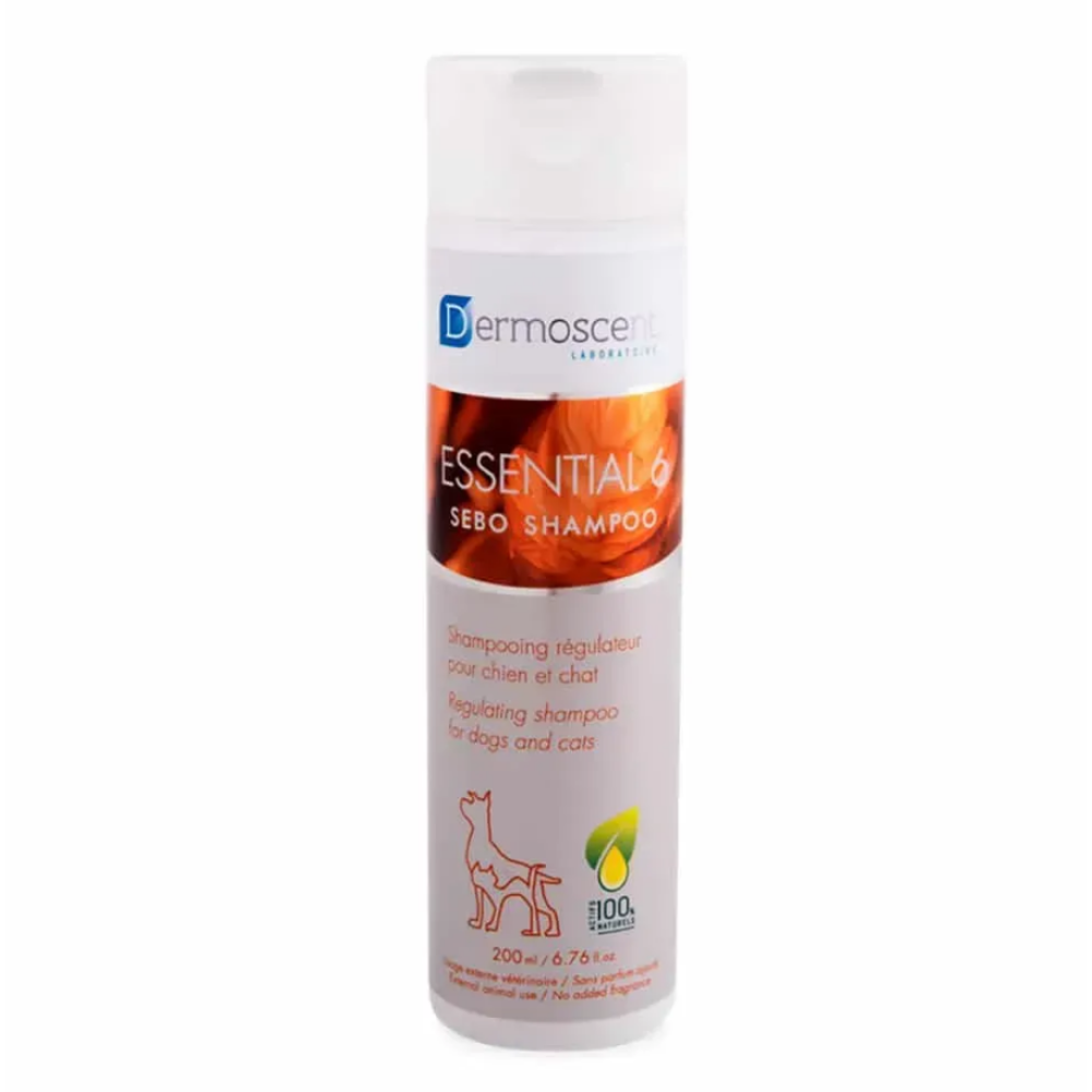Dermoscent Essential-6 Sebo Shampoo (Дермосент Есеншил 6 Себо шампунь) – себорегулюючий шампунь для котів і собак, який регулює активність сальних залоз для контролю стану шкіри. Формула Essential-6 Sebo Shampoo забезпечує просте та ефективне рішення при шкірних розладах та їхніх наслідках, таких як тьмяна або ламка шерсть, суха чи жирна шкіра, неприємний запах тощо.