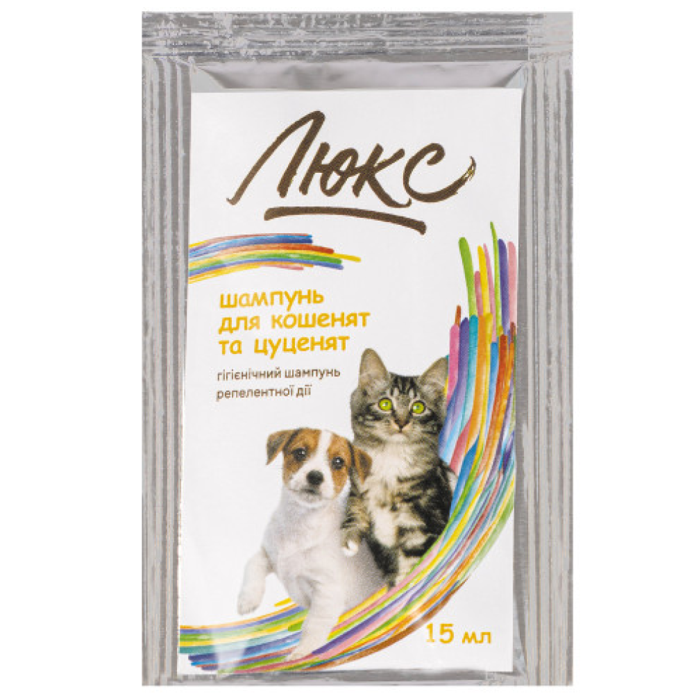 Гігієнічний шампунь для кошенят та цуценят має репелентну дію проти бліх, кліщів та інших ектопаразитів. Репелентний ефект досягається завдяки вмісту рослинних екстрактів: полину та багульника. Завдяки екстракту кореня оману та ромашки, що входять до складу унікальної формули, шампунь усуває подразнення шкіри, сприяє швидкому загоєнню невеликих подряпин після розчосів, шерсть стає блискучою та доглянутою.