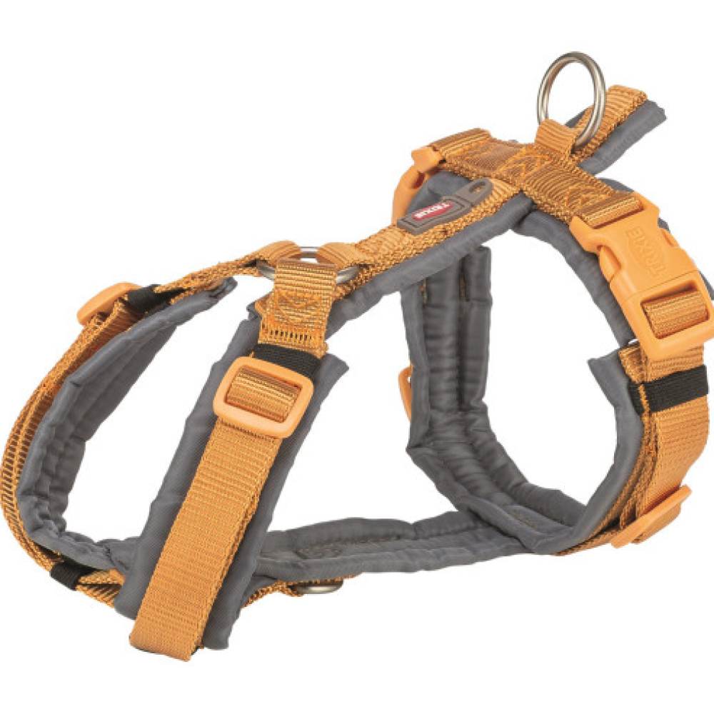 Шлея Trixie Premium трекінгова ідеально підходить для щоденних прогулянок з улюбленцем, гарантуючи вам надійний контроль, а песику – безпеку. Вона виготовлена з міцної ремінної стрічки, має м'яку оббивку по всьому колу. Ремінці на шиї та животі регулюються, що дає можливість підігнати шлею під індивідуальні розміри собаки. Є додаткове кільце для кріплення повідця в області грудей і петля для кріплення жетона або мигалки.