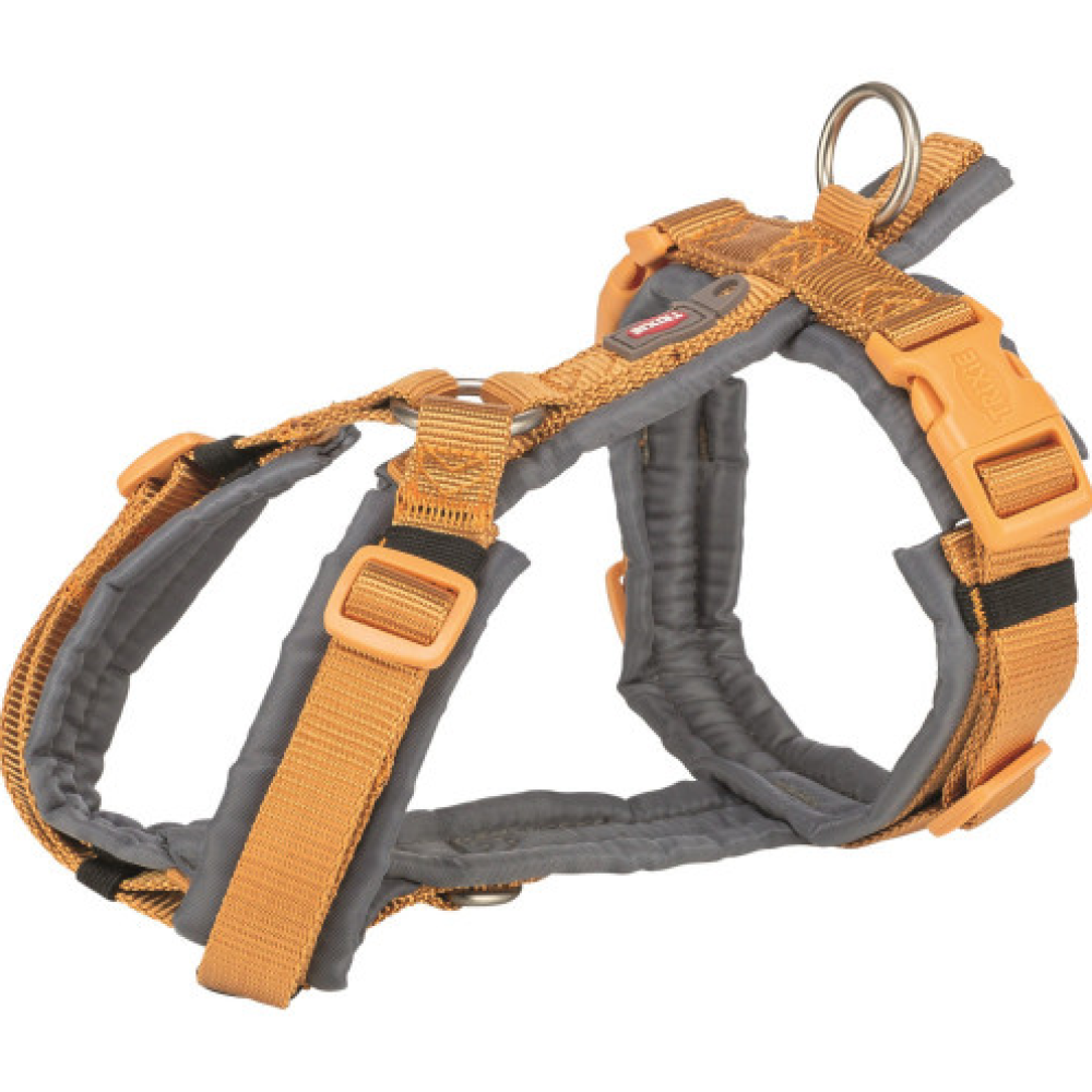 Шлея Trixie Premium трекінгова ідеально підходить для щоденних прогулянок з улюбленцем, гарантуючи вам надійний контроль, а песику – безпеку. Вона виготовлена з міцної ремінної стрічки, має м'яку оббивку по всьому колу. Ремінці на шиї та животі регулюються, що дає можливість підігнати шлею під індивідуальні розміри собаки. Є додаткове кільце для кріплення повідця в області грудей і петля для кріплення жетона або мигалки.