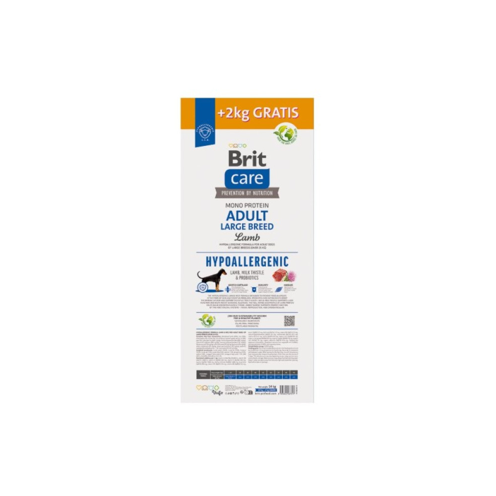 Повнораційний сухий корм на основі мʼяса ягняти та рису для дорослих собак великих порід та гігантських порід (вагою від 25 кг). Гіпоалергенна формула, забезпечить здоровʼя та відмінний зовнішній вигляд вовни, а також підходить для собак, схильних до харчової алергії.