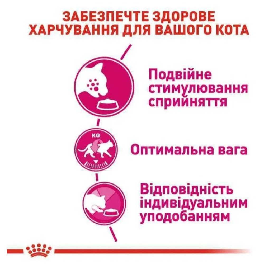 Royal Canin Fussy Exigent: сухий корм для гурманів - задовольнить навіть найвибагливіший апетит! Шукаєте ідеальний сухий корм для вибагливих кішок, який справді сподобається вашому пухнастому гурману? Представляємо Royal Canin Fussy Exigent - повнораціонний збалансований корм, розроблений спеціально для дорослих кішок (віком від 1 року), які відрізняються особливо перебірливим або мінливим апетитом. Ваша кішка заслуговує на харчування, яке не тільки корисне, але й неймовірно апетитне!