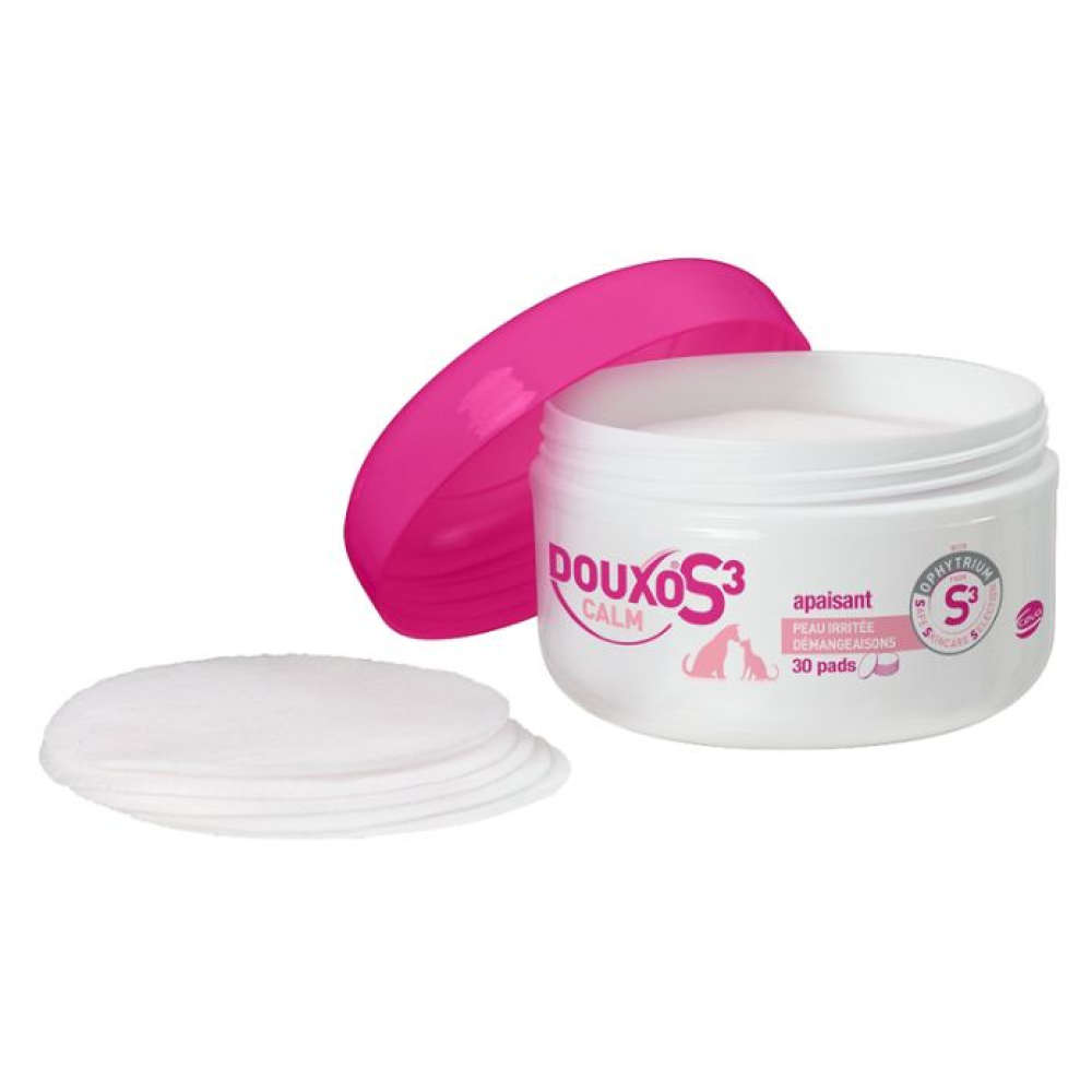 Cпонжі ДУКСО S3 CALM – заспокійливі подушечки для собак і котів із чутливою, подразненою шкірою або із симптомами свербежу. Допомагають відновити баланс мікрофлори, зменшують подразнення та заспокоюють шкіру, зміцнюють її механічний бар’єр і підтримують тривале зволоження. Підходять для локального застосування на чутливих ділянках шкіри. Гіпоалергенний аромат, формула з відрегульованим pH, безпечна для найчутливішої шкіри.