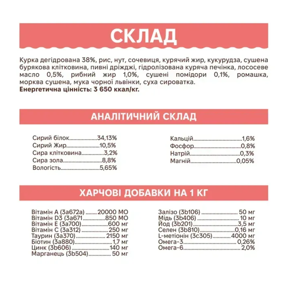 Сухий корм VELET ПРЕМІУМ "КУРИЦЯ І РИС" - це корм для дорослих стерилізованих кішок, що належить до преміум-класу. Він розроблений з урахуванням особливостей харчування таких тварин: має знижений вміст калорій, фосфору та магнію, а також збагачений необхідними вітамінами для підтримки здоров'я та контролю ваги. У складі міститься курка та рис, що робить його збалансованим варіантом харчування. Збалансований склад зі зниженим вмістом калорій, фосфору та магнію, що важливо для стерилізованих кішок.