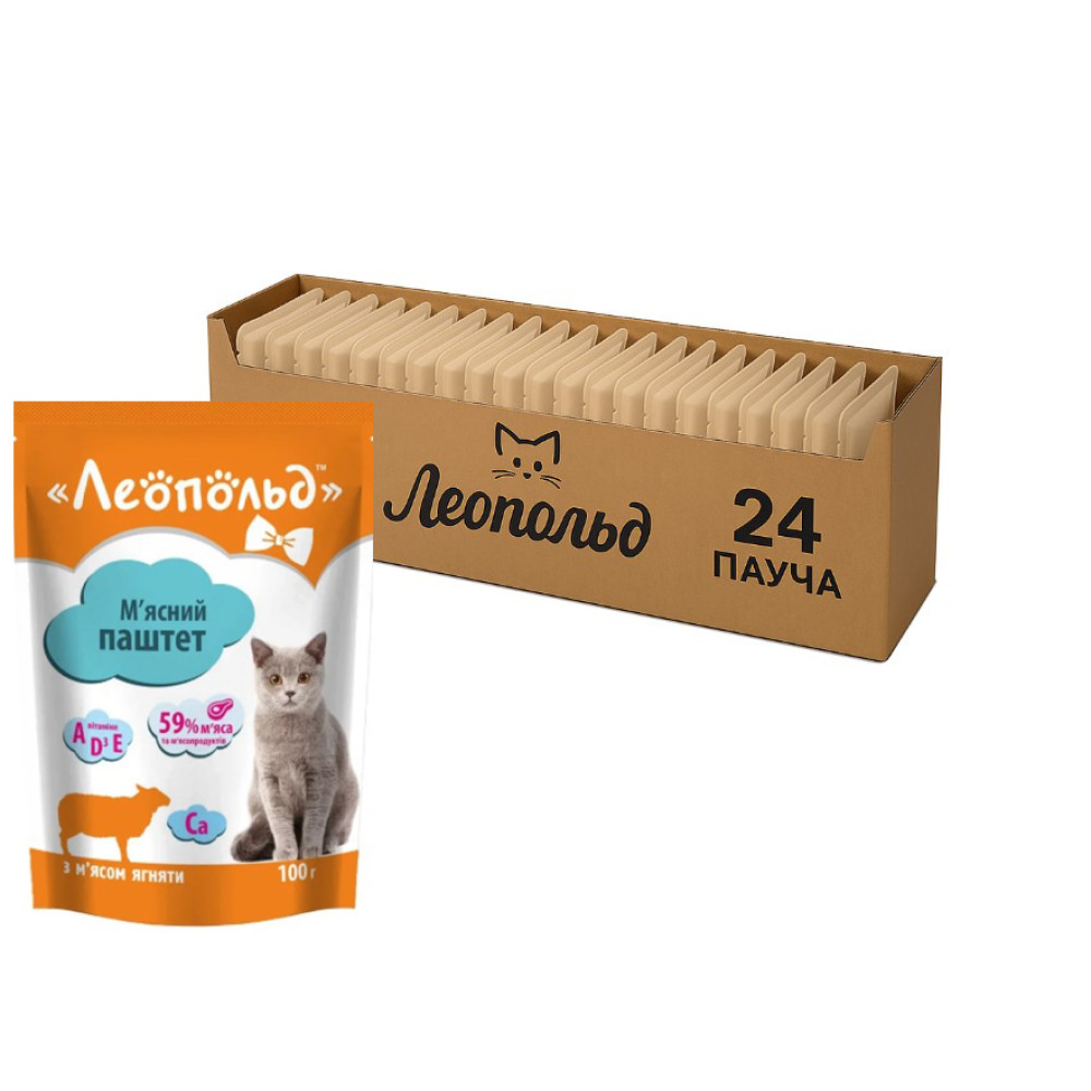 Вологий корм для кішок Леопольд паштет з ягням це збалансований корм для повноцінного харчування домашніх улюбленців. Побалуйте свого вихованця ароматним паштетом, якого в захваті будуть навіть перебірливі в їжі тварини. Завдяки вишуканому смаку корм ідеально підходить вибагливим кішкам.