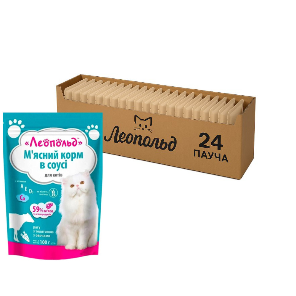 Мясной корм в соусе с телятиной и рыбой с овощами для котов - сбалансированный корм для полноценного питания домашних любимцев. Большое количество белка, которая содержится в мясной составляющей, и достаточное количество жира обогащают организм животного, предоставляют ей силы и активности в течение целого дня. Натуральный корм в консервированном виде для Вашего любимца не содержит красителей, ароматизаторов и сои, изготовленный только из натурального мяса и мясопродуктов. Готов для употребления без дополнительных усилий. Рекомендуется подавать к употреблению корм за температуры не ниже от комнатной.